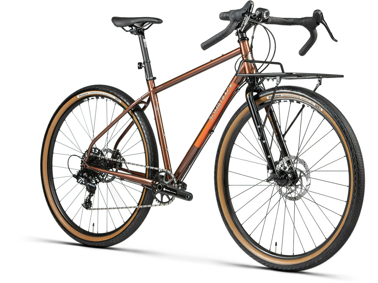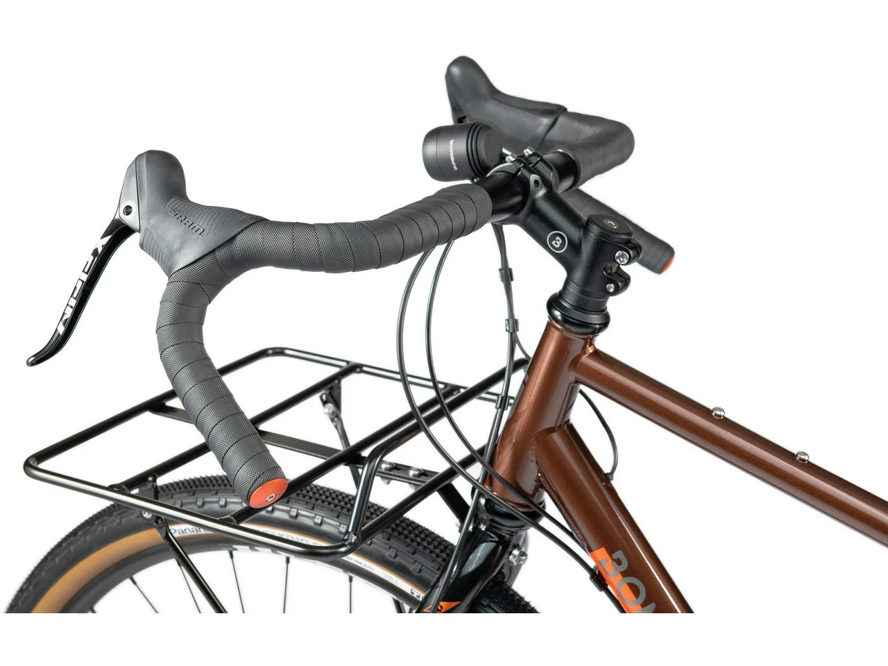 Con la bici de Trekking Beyond 2 de Bombtrack estarás óptimamente equipado para viajar con mucho equipaje gracias al portaequipajes delantero. El robusto cuadro y la horquilla de acero resisten casi todas las condiciones y convencen con una geometría agradable. Las largas jornadas sobre el sillín no representan problema alguno, gracias al Dropbar con 30° de Flare. En caso de que vaya oscureciendo de camino a tu destino final, irás siempre seguro y, sobre todo, claramente visible gracias al sistema de iluminación existente con alimentación a través de dinamo de buje. Los frenos de disco te dan el control que necesitas. Las ruedas y las cubiertas Tubeless-Ready hacen que la bicicleta sea más resistente a los pinchazos. Los ojales de fijación para portabidones, guardabarros, portaequipajes traseros y las bolsas, te permiten llevar equipaje adicional.