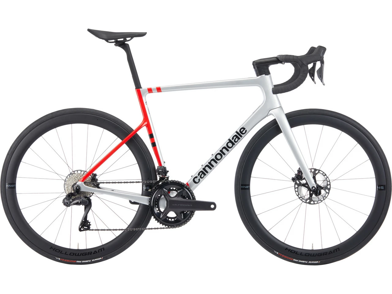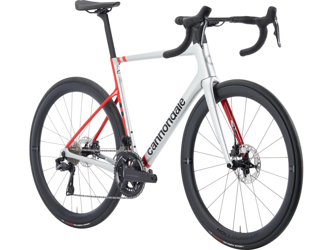 Especificaciones:Campo de aplicación:RutaTamaño de la rueda:28″Tallas:51 cm, 54 cm, 56 cm, 58 cm, 60 cm, 62 cmMaterial Cuadro:CarbonoMaterial Horquilla:CarbonoComponentes:Cuadro:Cannondale SuperSix Carbon, guía de cables interna con Switchplate, 12 x 142 mm, SAVE, abrazadera de tija de sillín integradaHorquilla:Cannondale Carbon, SAVE, integrated crown race, 12 x 100 mm, Flat Mount, guía de cables interna, 55 mm Offset (51 cm, 54 cm), 45 mm Offset (56-62 cm)Potencia:Cannondale HollowGram KNØT, aluminio, con cubierta de cables, -6°Manillar:Cannondale HollowGram SAVE SystemBar, Carbon, 8° Pitch AdjustJuego de dirección:Integrated, 1 1/8″ – 1 1/4″ (51 cm, 54 cm), 1 1/8″ – 1 3/8″ (56-62 cm)Tija de sillín:Cannondale HollowGram 27 SL KNØT, Carbon, 330 mm, 15 mm SetbackSillín:Fizik Tempo Argo R5, 150 mm de ancho, vainas S-AlloyBiela:Shimano Ultegra R8100, 34-50 DPedales:sinFrenos:Shimano Ultegra Di2 R8170 hidráulico, discos de freno MT800, 160 mm (RD), 140 mm (RT)Palanca de cambios:Shimano Ultegra Di2 R8170, 2×12 velocidadesSistema de cambios:Shimano Ultegra Di2 R8150, 12 velocidadesDesviador:Shimano Ultegra Di2 R8150, soldado, 2 velocidadesCassette:Shimano Ultegra R8100, 11-30 Dientes, 12 velocidadesCadena:Shimano CN-M8100, 12 velocidadesRuedas:Cannondale HollowGram 45 KNØT, Carbon, 20 /24 agujeros, altura de llantas de 45 mm, ancho de boca de 21 mm, tubeless ready, con bujes HollowGram KNØT CLCubierta:Vittoria Rubino Pro Bright Black, 700 x 25c, rayas reflectantesAprobaciones:Límite de peso:129 kg (ciclista + equipaje)Tamaño máximo de disco de freno:160 mmTamaño máximo de cubierta:30-622Número de platos:2 velocidadesCaracterísticas:concepto de geometría Proportional Response: las longitudes de las vainas inferiores y el diseño del cuadro se adaptan al tamaño del mismodiseño aerodinámico con tubos característicos en forma de alasensor de rueda ANT+/Bluetooth integrado para el seguimiento de la velocidad y la distancia recorrida, se puede emparejar con la aplicación Cannondale, funciona con 1 pila CR2032Cockpit plano con un aspecto limpio gracias a la guía de cables oculta, el tope de dirección evita que el manillar se pase de vueltas o se golpee contra el cuadroángulo de montaje del manillar ajustable en 8°la tija de sillín KNØT reduce las turbulencias del aireruedas KNØT con llantas relativamente anchas y perfil aerodinámico incluso con cubiertas más anchaseje pasante Speed-Release para facilitar el cambio de ruedasTecnología:SAVE