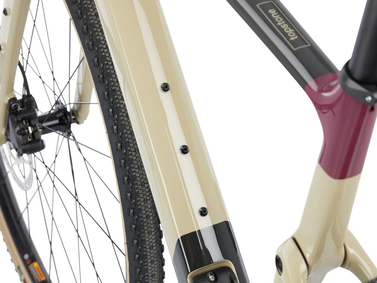 La Cannondale Topstone Carbon 3 28″ es una bici Gravel con horquilla de carbono, suspensión innovadora KingPin y transmisión Shimano GRX 2×11 velocidades. La geometría, ajustada por separado para cada tamaño de cuadro, está diseñada para la estabilidad en superficies difíciles y para un comportamiento dinámico de dirección. Con KingPin, te beneficias de hasta 30 mm de recorrido de muelle trasero en senderos accidentados, sin necesidad de amortiguadores pesados y de alto mantenimiento. El sensor de la rueda te permite hacer un seguimiento de tu velocidad y conectar tu bicicleta con la app de Cannondale. Es compatible con SmartSense y puede complementarse con el sistema en red de luz y radar. Equipada con numerosas fijaciones roscadas para equipaje y accesorios, también en la horquilla, así como con una gran holgura de cubiertas, con la Topstone te dan ganas de salir de los caminos trillados y lanzarte a la aventura.