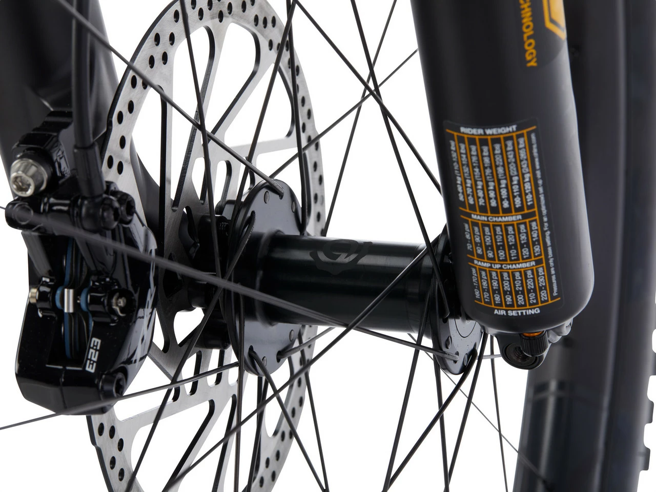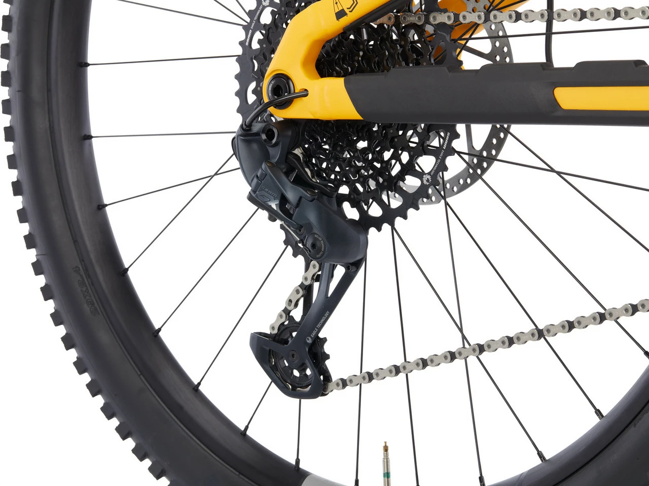 Especificaciones:Campo de aplicación:TodoterrenoTamaño de la rueda:29″Recorrido del muelle delantero:140 mmRecorrido del muelle trasero:125 mmTallas:S, M, L, XLMaterial cuadro principal:Aluminio (6066)Material parte trasera:Aluminio (6066)Componentes:Cuadro:COMMENCAL T.E.M.P.O., conificado doble, 12 x 148 mm (Boost)Horquilla:ÖHLINS RXF36 m.2 Air, amortiguación TTX-18, Ramp Up Chamber, HSC, LSC, Rebound, desplazamiento de 51 mm, 15 x 110 mm (Boost)Potencia:Ride Alpha 40, 40 mm, 31,8 mmManillar:Ride Alpha R20, 20 mm Rise (S); R27, 27 mm Rise (M-XL), 31,8 mmPuños:ODI Elite MotionAmortiguadores:ÖHLINS TTX1 Air, 210 x 50 mm, HSC, LSC, Rebound, 3 posiciones, Evol LVRemote System:sinJuego de dirección:Acros ZS56 – ZS56, rodamientos selladosTija de sillín:KindShock Lev Integra, 31,6 mm, Hub: 150 mm (S), 175 mm (M), 200 mm (L, XL)Sillín:Fizik Terra Alpaca X5, 145 mm, vainas S-AlloyBiela:SRAM GX Eagle, 170,0 mm, 32 Dientes, con eje de pedalier SRAM DUB-PressfitPedales:sinFrenos:TRP Trail Evo, 4 pistones, pastillas de frenos de resina, con discos de frenos TRP R1, 6 agujeros, 203 mm / 180 mmPalanca de cambios:SRAM GX Eagle, 12 velocidadesSistema de cambios:SRAM GX Eagle, 12 velocidadesCassette:SRAM GX Eagle, 12 velocidades, 10-52 DientesCadena:SRAM GX Eagle, 12 velocidadesLlantas:crankbrothers Synthesis Enduro Alloy, 28 agujeros, 31 mm de ancho de boca (RD); 32 agujeros, 29,5 mm de ancho de boca (RT)Radios:Sapim D-Light, J-Bend, 2,0 – 1,65 – 2,0 mm, conificados, acero inoxidable, soldados, negrosBuje rueda delantera:Industry Nine 1/1, 28 agujerosBuje rueda trasera:Industry Nine 1/1, 32 agujerosCubierta rueda delantera:Maxxis DHR II, 29 x 2,4″ , WT, 3C MaxxGrip, EXO, Tubeless ReadyCubierta rueda trasera:Maxxis Dissector, 29 x 2,4″ , WT, Dual Compound, EXO, Tubeless ReadyAprobaciones:Tamaño máximo de disco de freno:200 mm (trasero)Tamaño máximo de cubierta:29 x 2,4″ (atrás)Número de platos:1 velocidadesLongitud máxima de montaje de horquilla:561 mmCaracterísticas:bici All Mountain con suspensión ÖHLINS y transmisión SRAM GX-Eagle para todo tipo de senderossistema Virtual Contact: punto de giro virtual para un gran dinamismo y confortgeometría para ascensos eficientes y descensos sin concesioneshorquilla de suspensión ÖHLINS RXF36 de alto rendimientoamortiguador ÖHLINS TTX1 Air con varias opciones de ajuste adaptadas a la cinemática de la biciruedas crankbrothers Synthesis de alta calidad compatibles con Endurobujes Industry-Nine, rueda libre con ángulo de baja presión de 4°transmisión fiable SRAM GX-Eagle con gran ancho de banda2 fijación de portabidones: en el tubo inferior para el bidón, en la parte inferior del tubo superior para bolsas de accesoriosGeometría:(basada en una longitud de montaje de horquilla de 551 mm)