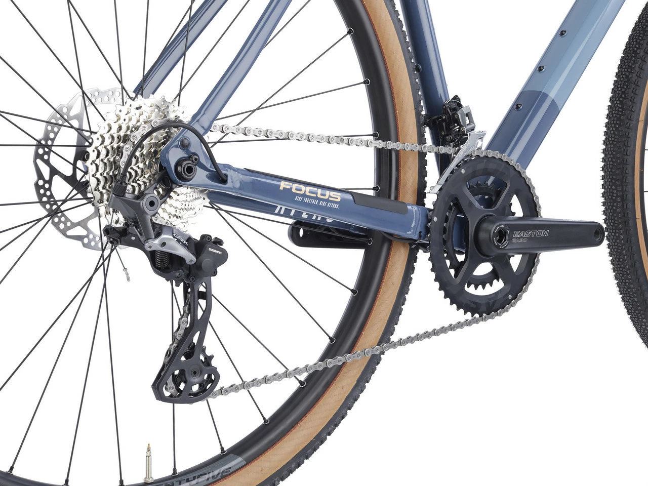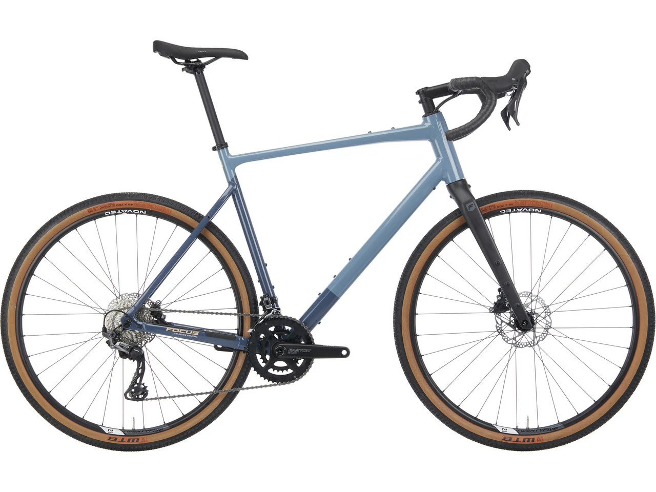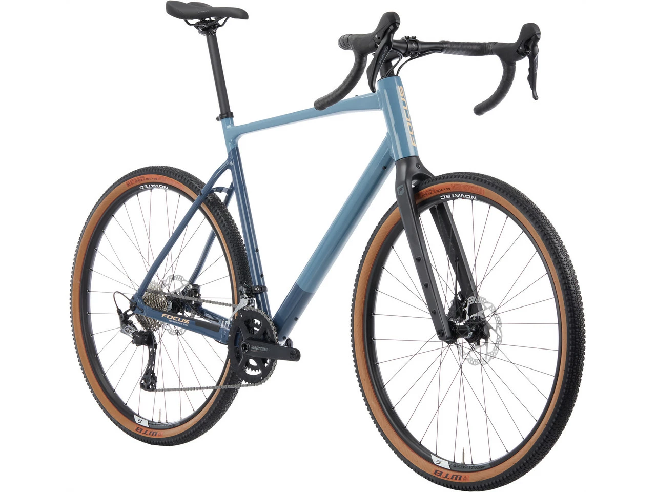 Especificaciones:Campo de aplicación:GravelTamaño de la rueda:28″Tallas:XS, S, M, L, XLMaterial Cuadro:AluminioMaterial Horquilla:CarbonoComponentes:Cuadro:FOCUS ATLAS, aluminio, Disc Flat Mount, BSA, eje pasante de 12 x 148 mm (Boost), guía de cables internaHorquilla:FOCUS ATLAS Carbon, Disc Flat Mount, eje pasante de 12 x 110 mm (Boost), longitud de montaje de 425 mm, 50 mm de desplazamiento, línea de frenos interna, con puntos de montajePotencia:FOCUS, aluminio, 31,8 mm, 6°Manillar:FOCUS JD RA85, 31,8 mm, 116 mm Drop, 74 mm Reach, 10° FlareJuego de dirección:Acros IS52/28,6-IS52/40 (ICR), FOCUS integrado C.I.S.Tija de sillín:FOCUS, aluminio, 27,2 mm, 350 mm, 0 mm SetbackSillín:WTB SL8Biela:Easton EA90, 11 velocidades, 30-46 D, eje de pedalier BSAPedales:sinFrenos:Shimano GRX BR-RX400, 160 mm/160 mmPalanca de cambios/frenos:Shimano GRX ST-RX600Sistema de cambios:Shimano GRX RD-RX810, 11 velocidadesDesviador:Shimano GRX FD-RX810Cassette:Shimano 105 R7000, 11 velocidades, 11-34 DCadena:Shimano CN-HG601, 11 velocidadesRuedas:Novatec 25 Elite, 25-622, Disc Center Lock, 12 x 110 mm (RD), 12 x 148 mm (RT)Cubierta:WTB Riddler, 700 x 45C, cubierta plegableAprobaciones:Límite de peso:120 kg Peso totalTamaño máximo de disco de freno:180 mmTamaño máximo de cubierta:27,5″ : 53-584, 28″ : 47-622, con guardabarros 28″ : 40-622Número de platos:2 velocidad, 1 velocidadesTamaño máximo del plato:1 velocidad 42 D (línea de cadena de 49,7 mm (Shimano)), 1 velocidad 40 D (línea de cadena 45 mm (SRAM)), 2 velocidades 30-46 D (línea de cadena 47 mm (Shimano)), 2 velocidades 30-43 D (línea de cadena de 47,5 mm (SRAM))Características:bici Gravel rápida y ligera con cuadro de aluminio para Adventure y Bikepackinggeometría Endurancenumerosas opciones de fijación para equipamientogran holgura de cubiertas de hasta 47 mmcompatible con 650Bcambios Shimano GRX 2×11 velocidades con bielas Easton, ruedas Novateccontrol en diferentes superficies y bajo todo tipo de condiciones meteorológicasmanillar ancho con frenos de disco y Flare ofrecen mucha seguridad y comodidadcon bolsa de tubo superior adecuadaclasificación EN 2: bicicleta para el ocio con un esfuerzo moderado, para superficies pavimentadas y carreteras sin pavimentar o caminos de gravilla de clasificación moderada, desniveles no superiores a 15 cm, velocidad media de 15 a 25 km/hTecnología:Road Boost