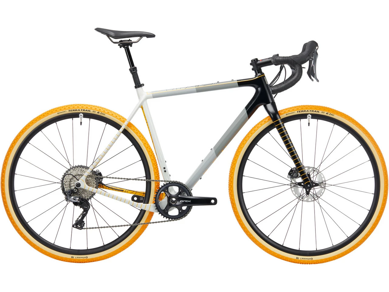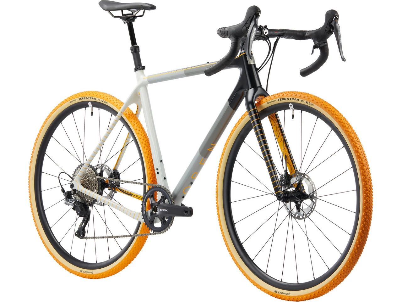 Continental celebra el 150 aniversario de su empresa con una OPEN NEW U.P. Bicicleta de Gravel de carbono incomparable. La parte central de la bici son las probadas cubiertas Terra Trail de la Orange-Cream Special Edition. Tienen 40 mm de ancho y ofrecen un agarre perfecto en gravilla. También muestran un comportamiento de rodadura rápida en asfalto. La capa adicional ProTection aumenta la protección contra pinchazos.