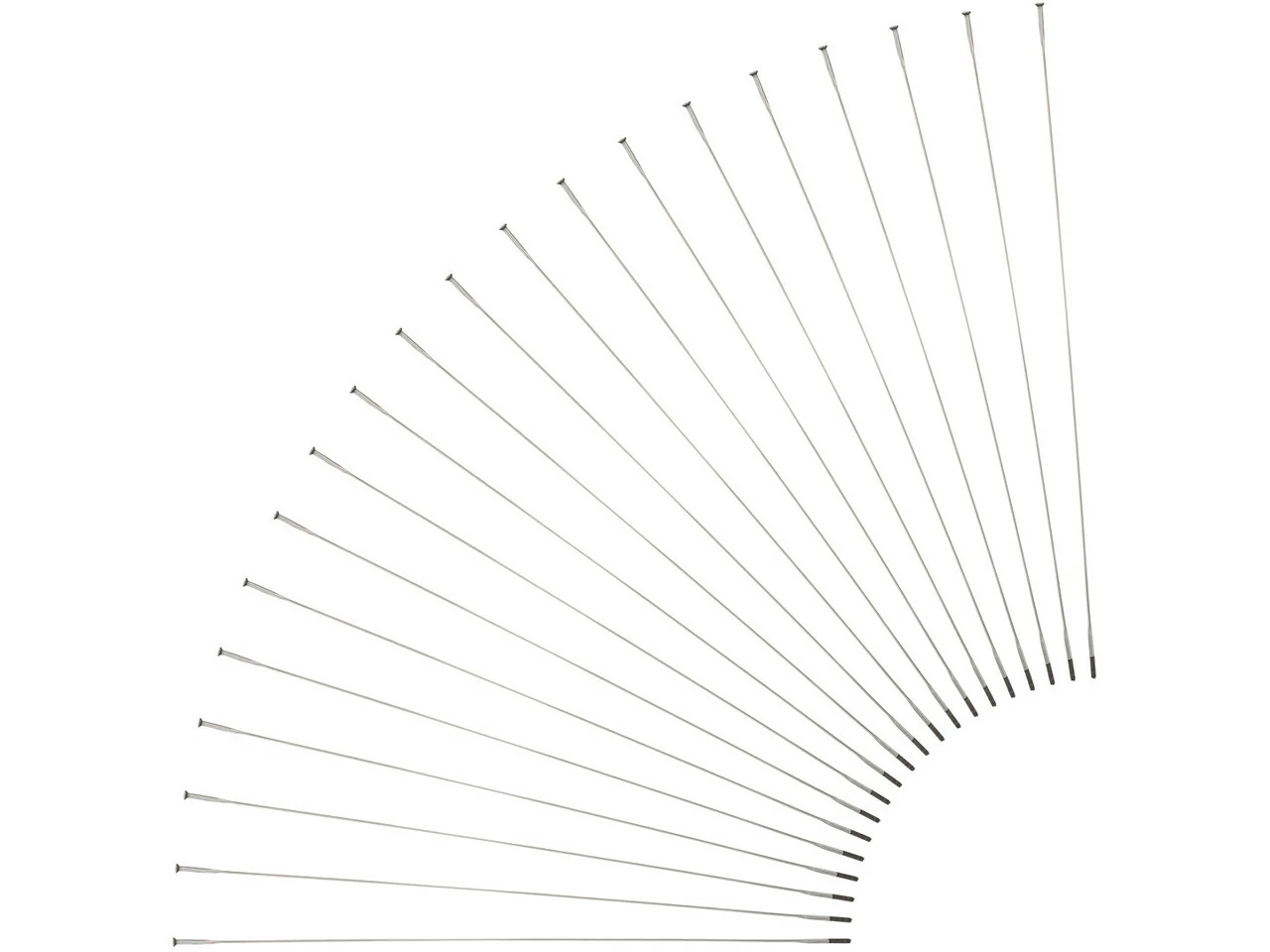 El radio Sapim CX-Ray – aquí en la versión de cabeza recta y en paquete de 20 – continúa obteniendo los mejores resultados de las pruebas en lo que se refiere a la resistencia a la fatiga. Su rigidez y resistencia únicas hacen que el CX-Ray sea adecuado para la mayoría de las disciplinas de ciclismo. La parte central de este radio se tira y luego se presiona en una forma especial que le da su perfil específico. Los radios CX-Ray son usados por los mejores ciclistas y triatletas del mundo. Incluso los especialistas en Downhill los usan porque aprecian su rigidez y flexibilidad. Logrado gracias a un tratamiento especial del aluminio y un sofisticado método de producción.