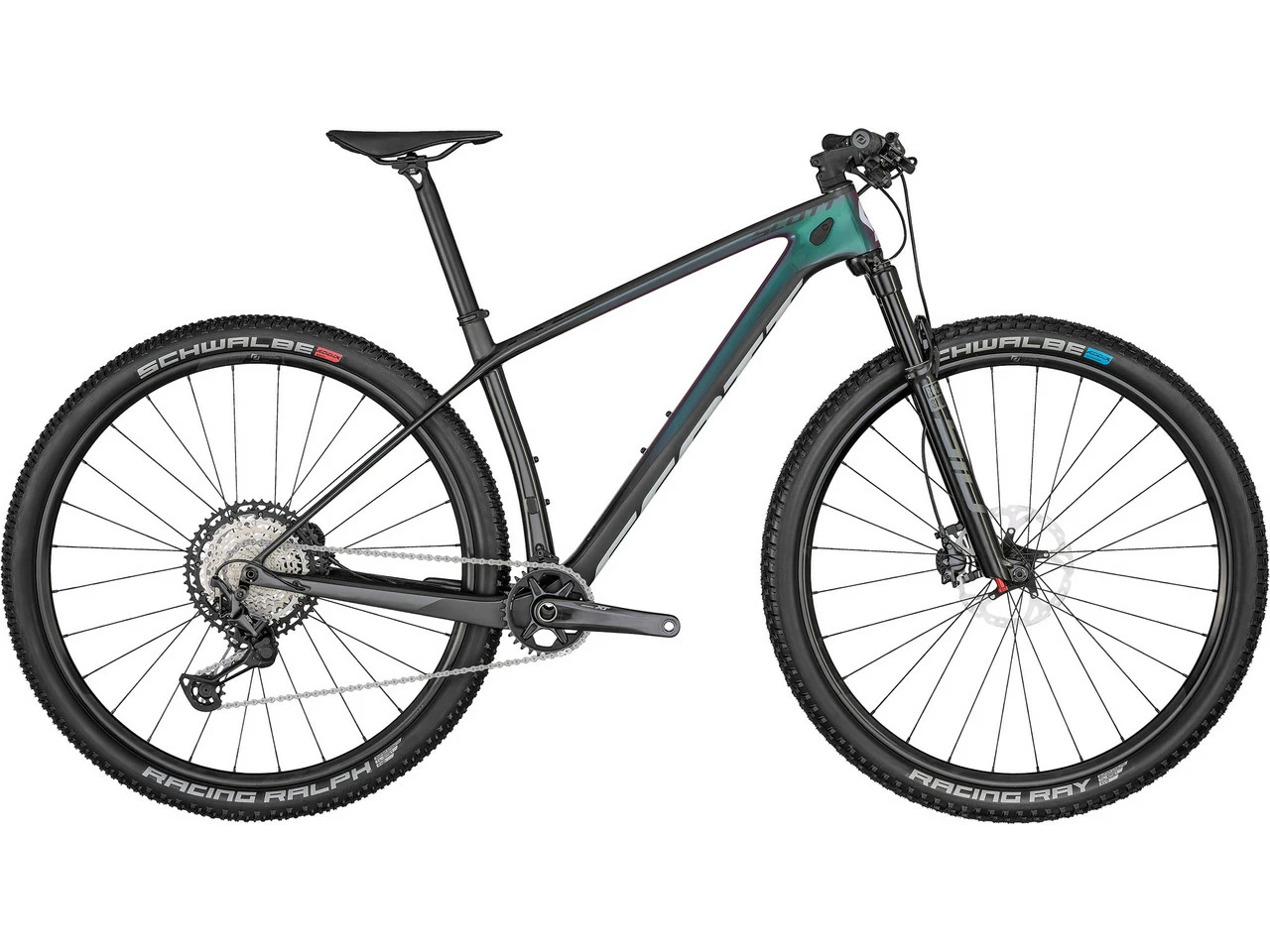 Especificaciones:Campo de aplicación:Cross CountryTamaño de la rueda:29″Recorrido del muelle:100 mmTallas:S, M, L, XLMaterial Cuadro:Carbon (HMF)Componentes:Cuadro:Scott Scale RC Carbon (HMF), 12 x 148 mm BoostHorquilla:RockShox SID SL RL Air, desplazamiento de 44 mm, 15 x 110 mm BoostPotencia:Syncros XR1.5, -8°, 31,8 mm, 1 1/8″ , aluminio (2014)Manillar:Syncros Fraser 1.5, 9° Backsweep, 740 mm, aluminio (7050)Puños:Syncros Pro Lock-OnRemote System:Scott RideLoc, 2 nivelesJuego de dirección:Syncros Pro Drop in, 1,5″ – 1 1/8″ taperedTija de sillín:Syncros Duncan 1.5, 10 mm Setback, 31,6 mm, 400 mmSillín:Syncros Belcarra Regular 2.0, raíles de sillín de CrMoBiela:Shimano XT FC-M8100-1, Hollowtech II, 32 DientesPedales:sinFrenos:Shimano XT M8100, Disc 6 agujeros, 180 mm (RD), 160 mm (RT)Palanca de cambios:Shimano XT SL-M8100-IR, Rapidfire Plus, I-SpecSistema de cambios:Shimano XT RD-M8100 SGS, 12 velocidadesCassette:Shimano XT CS-M8100-12, 10-51 DientesCadena:Shimano CN-M7100Llantas:Syncros Silverton 2.0, Disc, 28 agujerosBuje rueda delantera:15 x 110 mm Boost, Disc 6 agujerosBuje rueda trasera:15 x 148 mm Boost, Disc 6 agujeros, Shimano Micro SplineCubierta rueda delantera:Schwalbe Racing Ray, Evo Super Ground, TLE, 29 x 2,25″ , Addix Speed GripCubierta rueda trasera:Schwalbe Racing Ralph, Super Ground, TLE, 29 x 2,25″ , Addix Speed GripAprobaciones:Límite de peso:128 kg Peso totalCaracterísticas:bicicleta de Cross Country con ejes Boosthorquilla de suspensión con control remoto de manillarguía de cables internaestructuras de tubos optimizadas y alineación de capas en el cuadro mediante tecnología Evo-Lap por ordenadorGeometría:S: