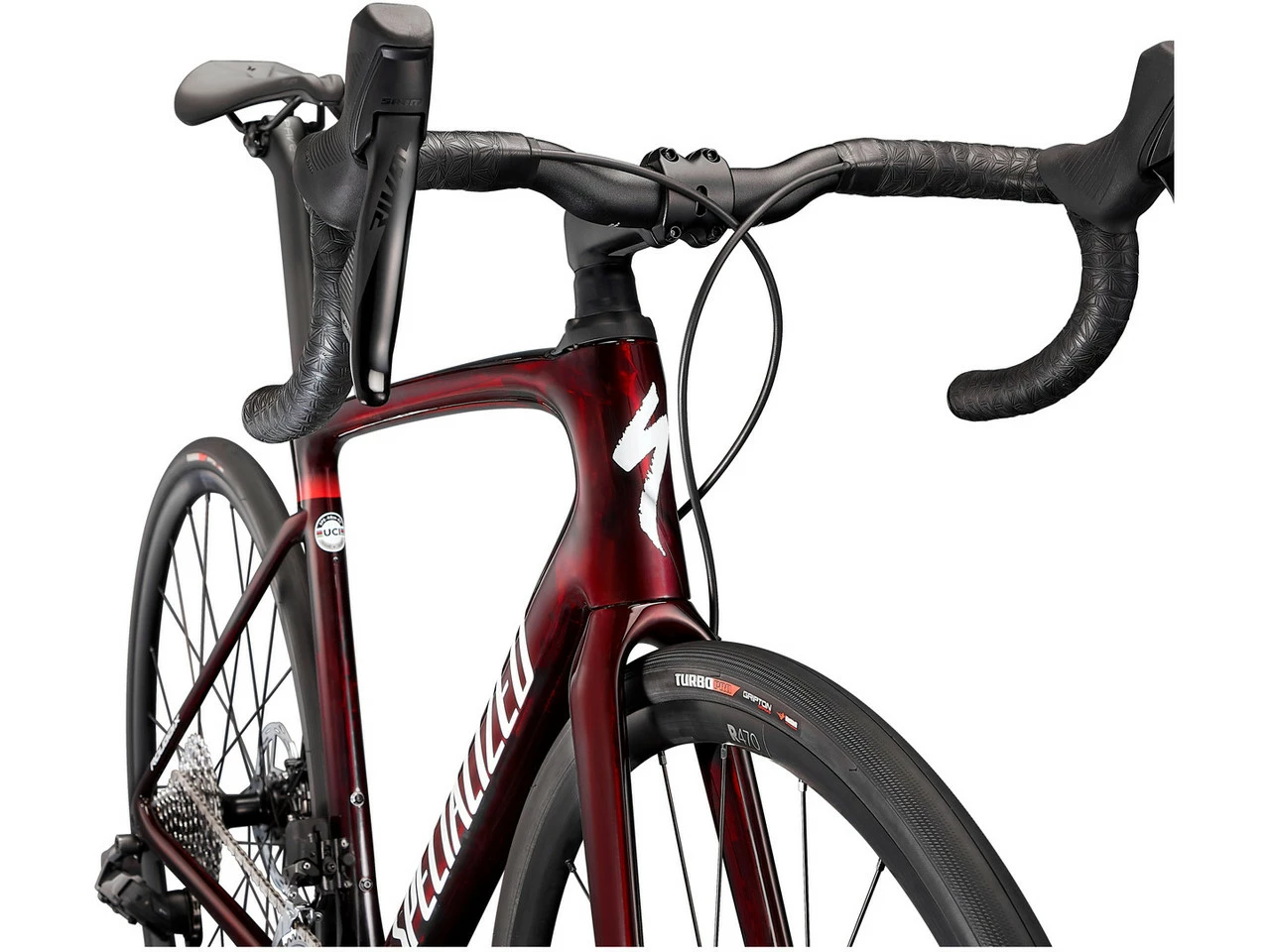 Especificaciones:Campo de aplicación:RutaTamaño de la rueda:28″Tallas:49 cm, 52 cm, 54 cm, 56 cm, 58 cm, 61 cmMaterial Cuadro:Carbono (10r)Material Horquilla:CarbonoComponentes:Cuadro:Specialized Roubaix, FACT™-Carbon, Disc Flat Mount, eje pasante de 12 x 142 mmHorquilla:Specialized Roubaix, Future Shock 2.0, Disc Flat Mount, longitud de montaje de 370 mm, eje pasante de 12 x 100 mmPotencia:Specialized Future ProManillar:Specialized Hover Comp, aluminio, 125 mm Drop, 75 mm ReachJuego de dirección:S192500009 (Roubaix 2020, IS)Tija de sillín:Specialized S-Works Pavé, Hidden Drop ClampSillín:Specialized Body Geometry Power CompBiela:SRAM Rival, 48-35 D, eje de pedalier SRAM DUB BSAPedales:sinFrenos:SRAM Rival, freno de disco hidráulicoPalanca de cambios/frenos:SRAM Rival eTap AXSSistema de cambios:SRAM Rival eTap AXS, 12 velocidadesDesviador:SRAM Rival eTap AXS, soldadoCassette:SRAM Rival XG-1250, 12 velocidades, 10-36 DCadena:SRAM Rival, 12 velocidadesRuedas:DT Swiss R470, ancho de boca de 20 mm, Tubeless Ready, 24 agujeros + bujes de eje pasante Specialized Disc Center Lock, de sellado completo, rueda libre de aluminio + radios de acero inoxidable DT Swiss Champion 14 G + cabecillas de latón DT SwissCubierta:Specialized Turbo Pro, 700 x 28 mmAprobaciones:Límite de peso:109 kg (ciclista + equipaje)Tamaño máximo de disco de freno:160 mmTamaño máximo de cubierta:33-622 (700x33C)Número de platos:2 velocidadesCaracterísticas:flexibilidad absoluta en superficies rugosas como el pavéaerodinámica y extremadamente potenteFuture Shock 2.0 System para mayor confortSmooth-Boot-Design para una transición limpia del tubo de dirección a la potenciaflexibilidad adicional gracias a la tija de sillín especialbajo peso totalamplio espacio para cubiertascámaras de aire con válvula SV de 48 mmcinta de manillar Supacaz Super Sticky KushTecnologías:FACT™