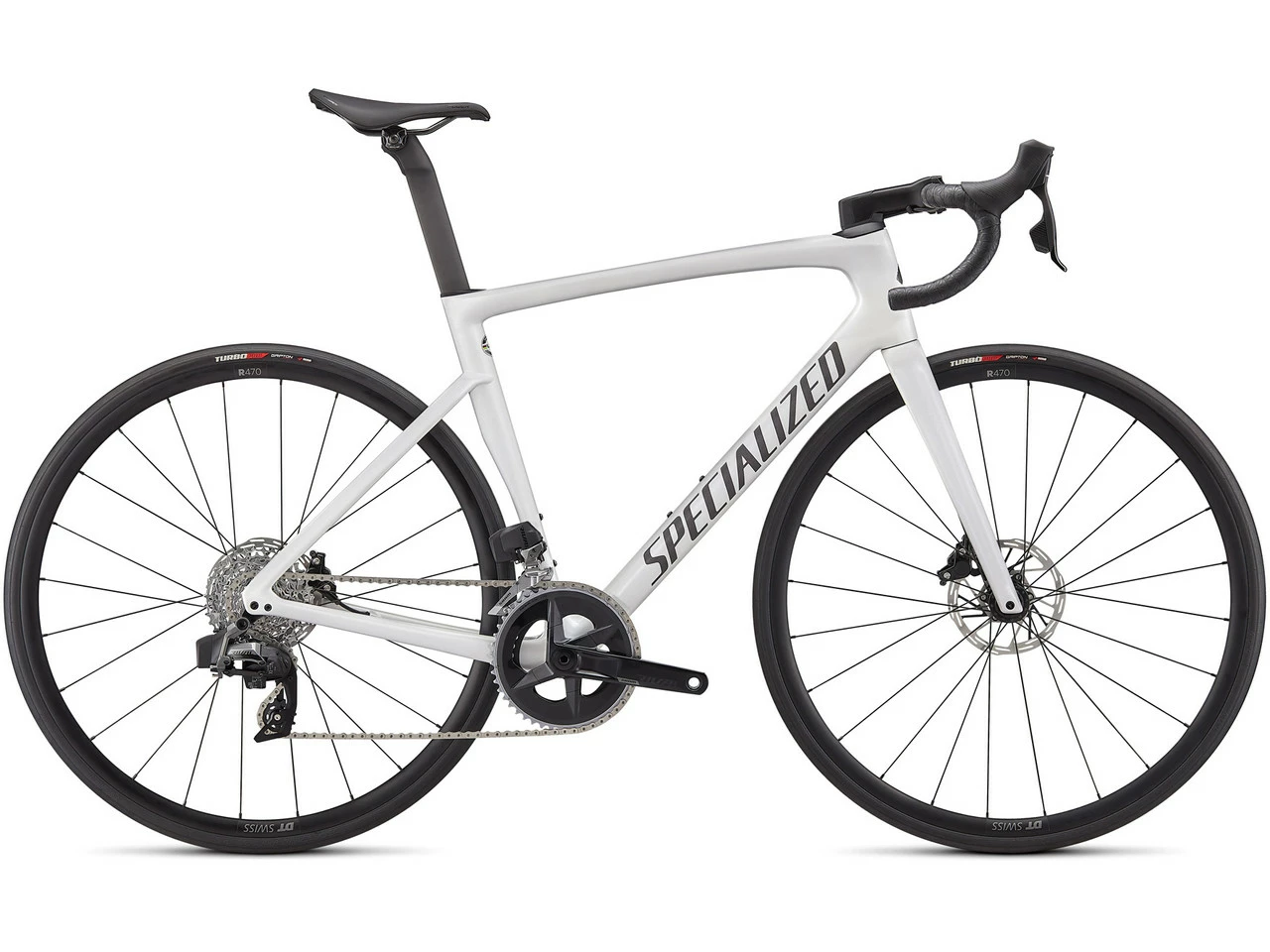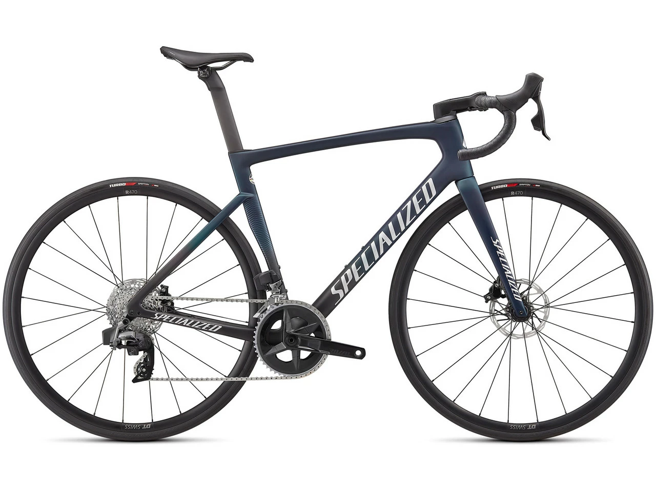 Especificaciones:Campo de aplicación:RutaTamaño de la rueda:28″Tallas:44 cm, 49 cm, 52 cm, 54 cm, 56 cm, 58 cm, 61 cmMaterial Cuadro:Carbono (10r)Material Horquilla:CarbonoComponentes:Cuadro:Specialized Tarmac SL7, FACT™-Carbon, Disc Flat Mount, eje pasante de 12 x 142 mmHorquilla:Specialized Tarmac SL7, FACT-Carbon, Disc Flat Mount, longitud de montaje 366 mm, eje pasante 12 x 100 mmPotencia:Specialized Tarmac integrado, 6°Manillar:Specialized Shallow Drop, Aluminio 6061, 70 x 125 mm, abrazadera de 31,8 mmTija de sillín:Specialized 2021 S-Works Tarmac Carbon, FACT-Carbon, 20 mm SetbackSillín:Specialized Body Geometry Power CompBiela:SRAM Rival, 35-48 D, eje de pedalier SRAM DUB BSAPedales:sinFrenos:SRAM Rival, freno de disco hidráulicoPalanca de cambios/frenos:SRAM Rival eTap AXSSistema de cambios:SRAM Rival eTap AXS, 12 velocidadesDesviador:SRAM Rival eTap AXS, soldadoCassette:SRAM Rival XG-1250, 12 velocidades, 10-36 DCadena:SRAM Rival, 12 velocidadesRuedas:DT Swiss R470, ancho de boca de 20 mm, Tubeless Ready, 24 agujeros + bujes de eje pasante Specialized Disc Center Lock, de sellado completo, rueda libre de aluminio + radios de acero inoxidable DT Swiss Champion 14 G + cabecillas de latón DT SwissCubierta:Cubierta plegable Specialized Turbo Pro, 60 tpi, protección anti pinchazos BlackBelt, 700 x 26 mmAprobaciones:Límite de peso:109 kg (ciclista + equipaje)Tamaño máximo de disco de freno:160 mmTamaño máximo de cubierta:32-622 (700x32C)Número de platos:2 velocidadesCaracterísticas:desarrollado sobre la base de la Venge con la ayuda de lFreeFoil Shape Library, análisis de FEA isotópico, túnel de viento, etc. para la mejor combinación de aerodinámica y ligerezadesarrollada considerando las opiniones de corredores profesionales de los equipos SD Worx, Deceuninck-Quick Step y Bora-Hansgroheconfortable incluso en viajes largos con un manejo perfecto y velocidad apta para competenciasun plan de disposición único para cada tamaño de cuadro de orden diferente, alineaciones, cantidades de material en ciertas áreasfácil integración para un cockpit ordenado y sobre todo rápidocinta de manillar Supacaz Super Sticky Kushcámaras de aire con válvula SV de 48 mmTecnologías:FACT™