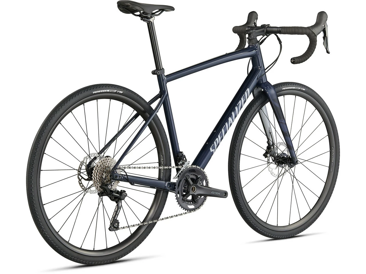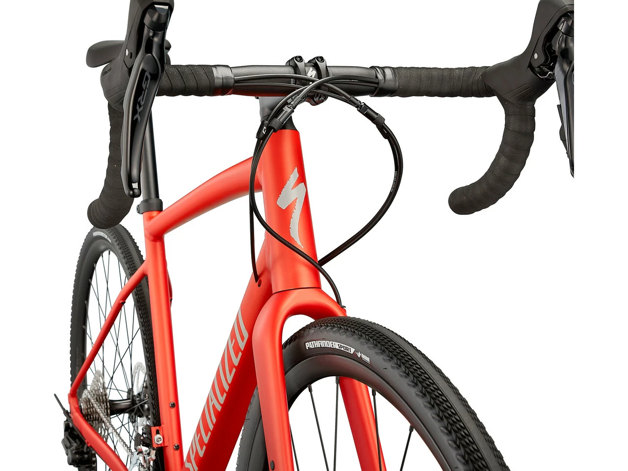 Especificaciones:Campo de aplicación:GravelTamaño de la rueda:28″Tallas:49 cm, 52 cm, 54 cm, 56 cm, 58 cm, 61 cmMaterial Cuadro:aluminio (E5)Material Horquilla:CarbonoComponentes:Cuadro:Specialized Diverge E5 Premium-aluminio, Disc Flat Mount, 12 x 142 mmHorquilla:FACT™-Carbon, Disc Flat Mount, longitud de montaje 390 mm, 55 mm de desplazamiento, 12 x 100 mmPotencia:Specialized, 7° Rise, Aluminio (forjado 3D), 4 tornillosManillar:Specialized Shallow Drop, 31,8 mm, 70 x 125 mm, Aluminio (6061)Tija de sillín:Specialized, aluminio, 27,2 mm, 12 mm Setback, abrazadera doble, herrajes inoxidablesSillín:Specialized Body Geometry Bridge, vainas de aceroBiela:Shimano GRX RX600, eje de pedalier Shimano 68 mm, 30-46 DPedales:sinFrenos:Shimano GRX 810, freno de disco hidráulicoPalanca de cambios/frenos:Shimano GRX RX400 mecánico 2×10 velocidades / hidráulicoSistema de cambios:Shimano GRX RX400, 10 velocidadesDesviador:Shimano GRX RX400, soldadoCassette:Shimano CS-HG50-10, 10 velocidades, 11-36 DCadena:KMC X10, 10 velocidades, con Missing Link reutilizableRuedas:AXIS Elite DiscCubierta:Specialized Pathfinder Sport, 700 x 38CAprobaciones:Límite de peso:125 kg (ciclista + equipaje)Tamaño máximo de disco de freno:160 mmTamaño máximo de cubierta:700 x 47C, 27,5″ x 2,1″Número de platos:2 velocidad, 1 velocidadesCaracterísticas:geometría optimizada para Graveluna bicicleta ágil y versátilSmooth-Boot-Design para una transición limpia del tubo de dirección a la potenciaconfianza y estabilidad de conducción en terreno accidentadodirección dinámica gracias a una potencia más cortaholgura máxima de cubiertasse puede utilizar con ruedas de 700C y 27.5″ (650B)numerosos puntos de montaje para portabidones y bolsasguía de cables internacinta de manillar Specialized S-Wrapabrazadera de sillín de aluminio, 30,8 mmcámaras de aire de 700 x 28-38 mm, válvula SV de 48 mmTecnología:FACT™