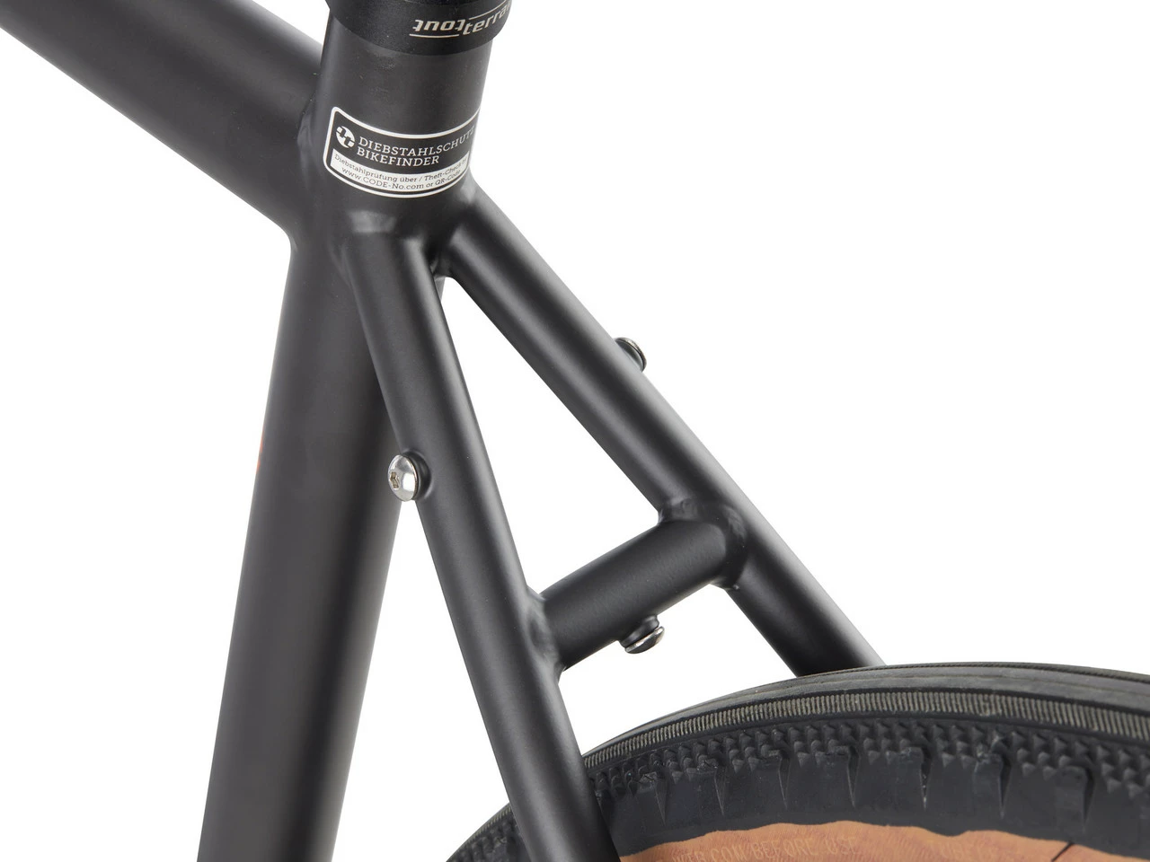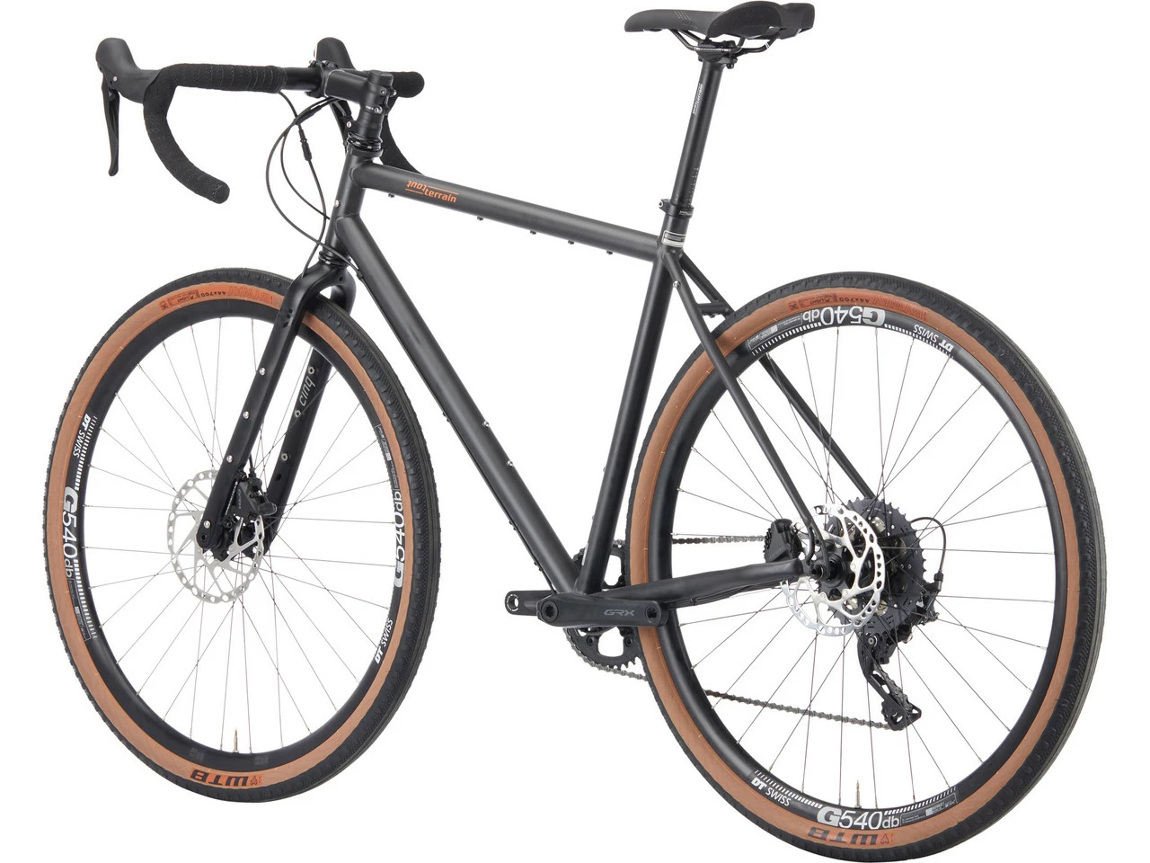 cuadro de acero duradero con 4 fijaciones de portabidones en el triángulo del cuadrohorquilla rígida de carbono, ligera y estable, con 2 fijaciones para portabidones y orificios para luces, guardabarros y portaequipajesel sistema de cambios Shimano GRX de 1×11 velocidades garantiza un cambio suave y fiable incluso en caminos de gravilla y pasos de raícesllantas de DT Swiss especialmente desarrolladas para Gravelsillín ligeramente acolchado con muesca para aliviar la presión y funda de microfibra resistente a la intemperieEl tope de dirección Ergo-Stop 2 evita el giro excesivo del manillarGeometría:S: